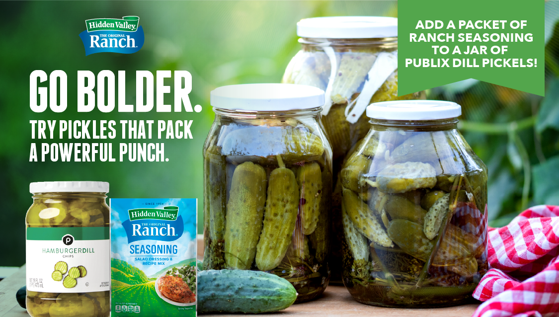The Deliverable: Endcap shelf signage that will excite shoppers with a passion for pickles to hop on the ranch trend with Publix and Hidden Valley products.