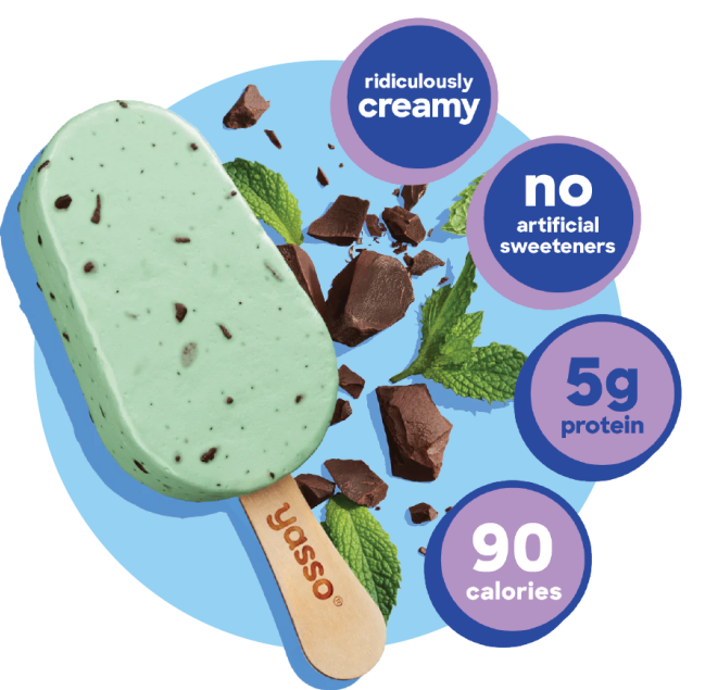 Option 1: Like Yasso bars, we believe in keeping it simple and tasty. This trio displays a clear headline and a stylish door cling that showcases all the mouthwatering reasons why Yasso is the leader in ice cream bars.